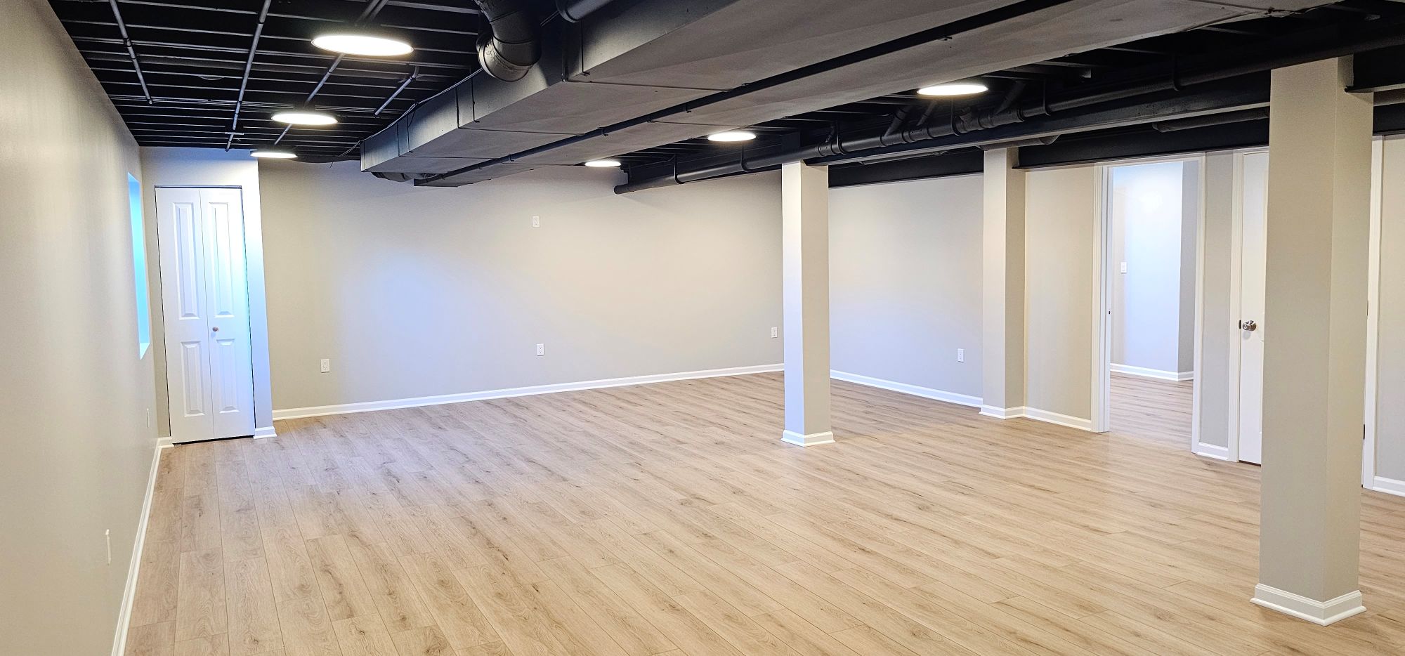 You’ll walk through finished rooms with the project manager. Items needing adjustment get noted and are corrected immediately. 12-month warranty kicks in.